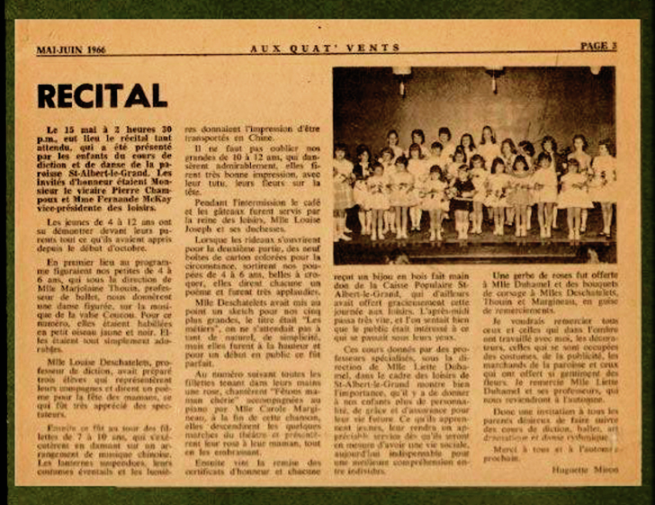 Mai-juin 1966 - Récital préparé par : Mlle Louise Deschâtelets, professeure de diction et de Mme Marjolaine Thouin, professeure de ballet.